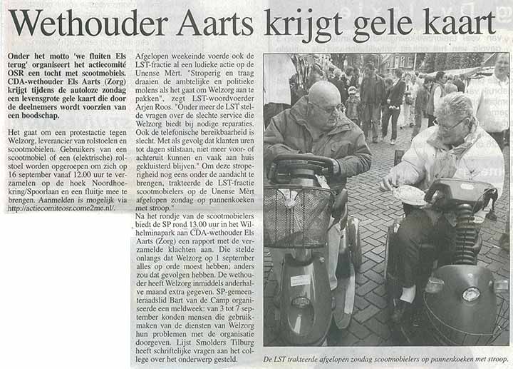 "Een rolstoel is in januari 2007 maar liefst 3 weken naar Lelystad geweest om een kantelmotor te plaatsen. Na 3 weken weer teruggebracht zonder dat er iets aan was verholpen."