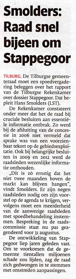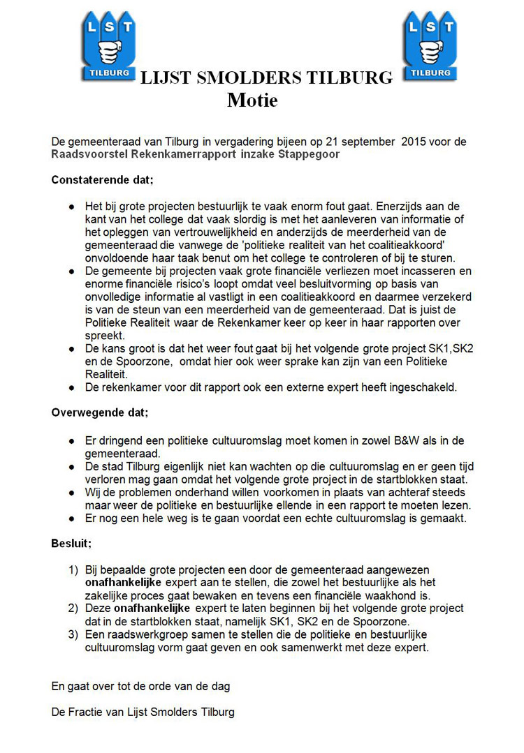 Gelet op de omvang van het project van SK1, de complexiteit daarvan en de daarbij behorende financiële en juridische risico's stelt de Lijst Smolders Tilburg voor om :
